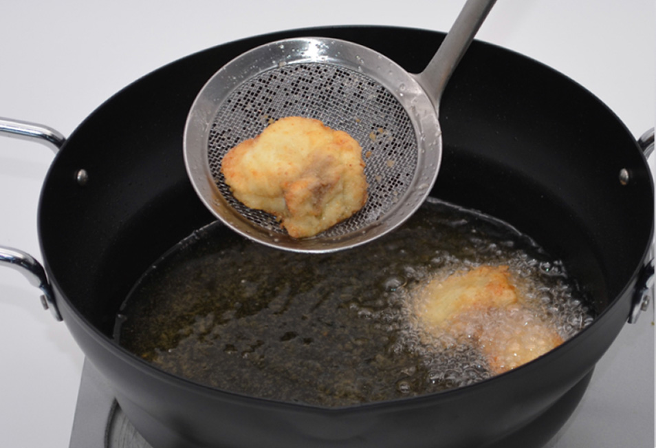 3.170℃程度の油温できつね色程度になるまで揚げます