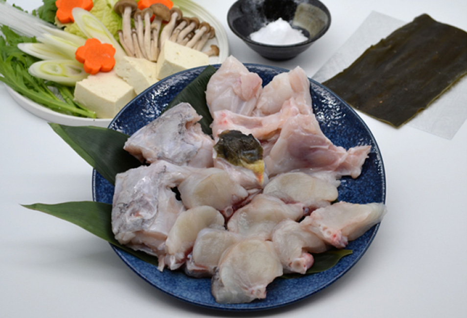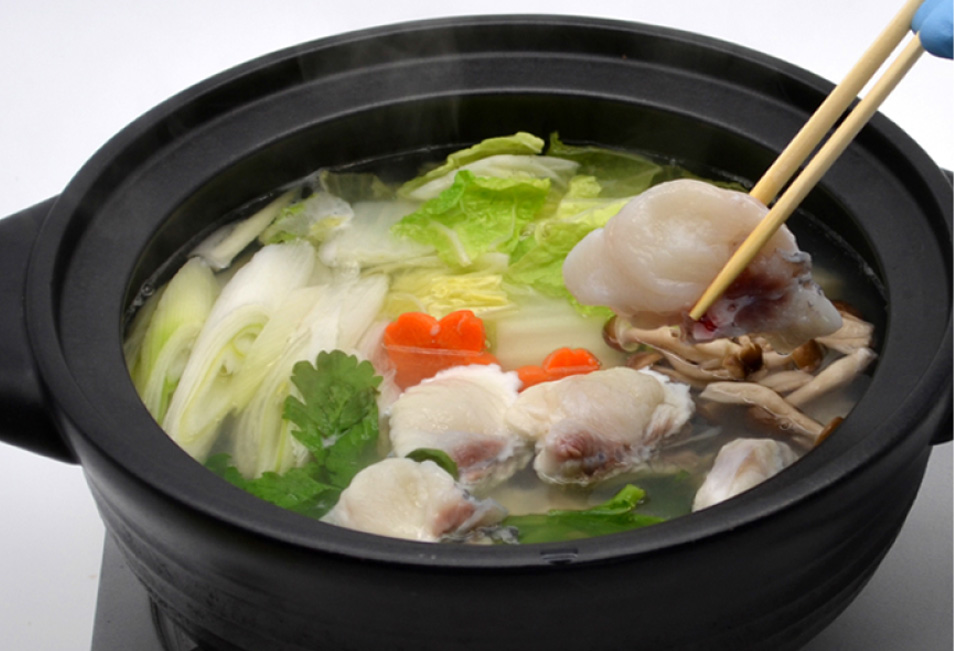 1.野菜(白菜、白ねぎ、しめじ、春菊、豆腐など)、ふぐの身をお好みのサイズにカットします