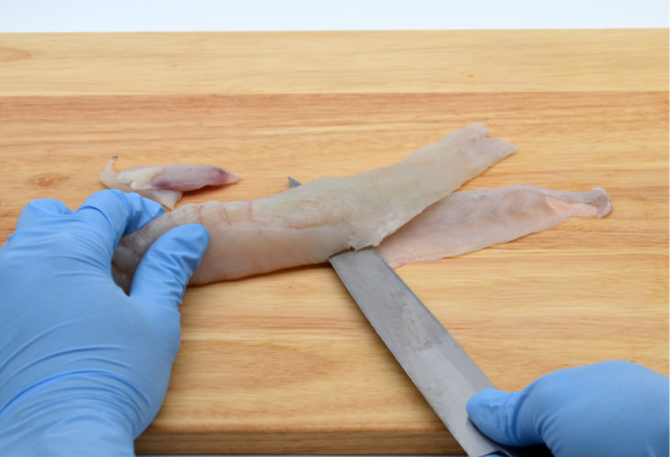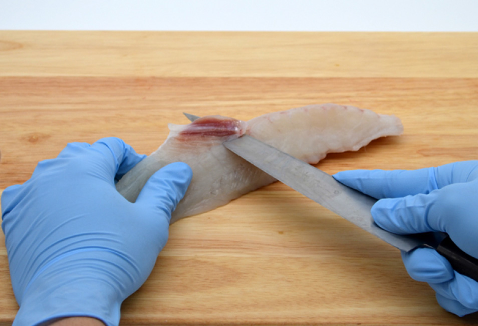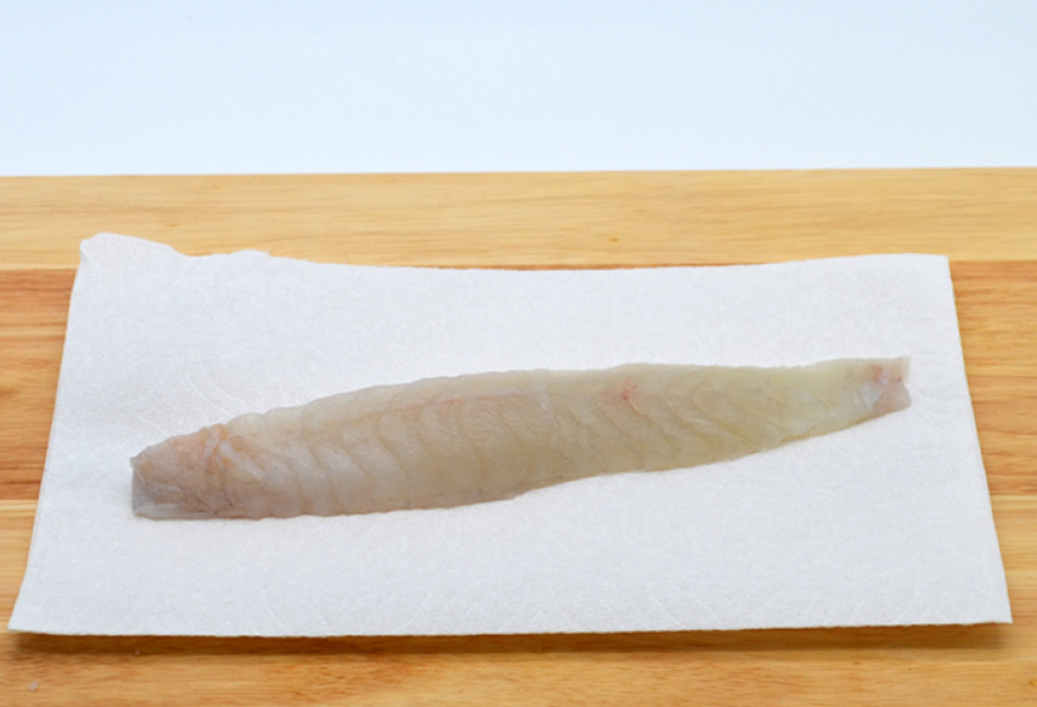 2.血合い(赤黒い部分)、小骨を取り除きます